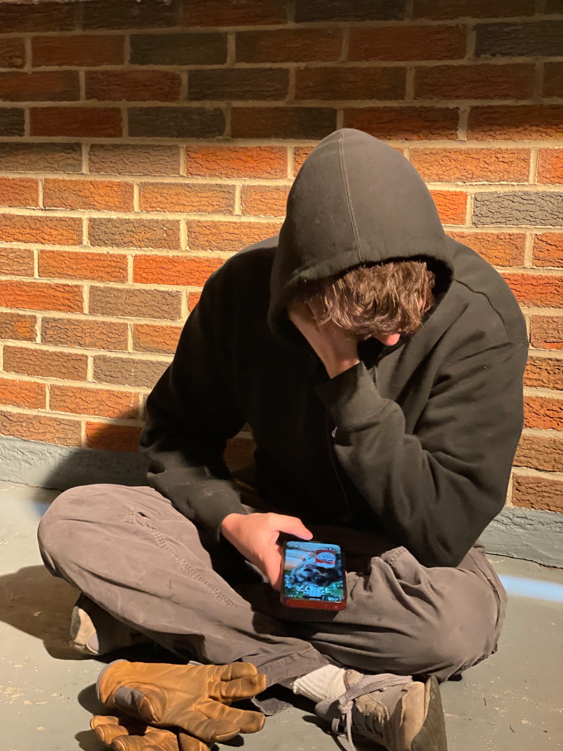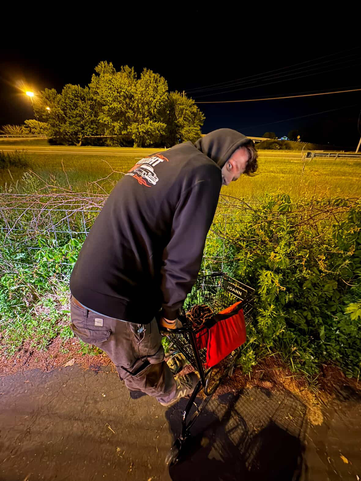 Sheltering from the rain with Matt Auman, Cher Kowalski, and some lighting equipment on day one.