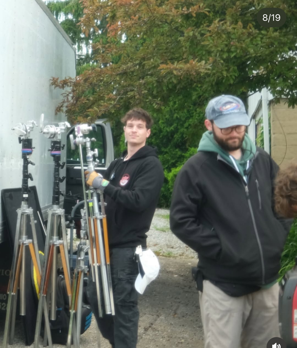 Fellow Grip PA, Matt Auman, and I unloading the grip truck on day two.
